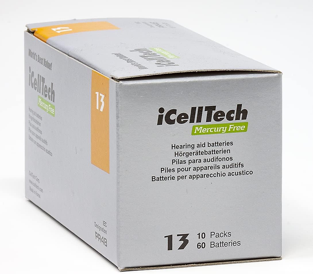 N13 ზომა კორეული ბრენდის, iCellTech თუთია-ჰაერის ელემენტები სმენის აპარატებისთვის.